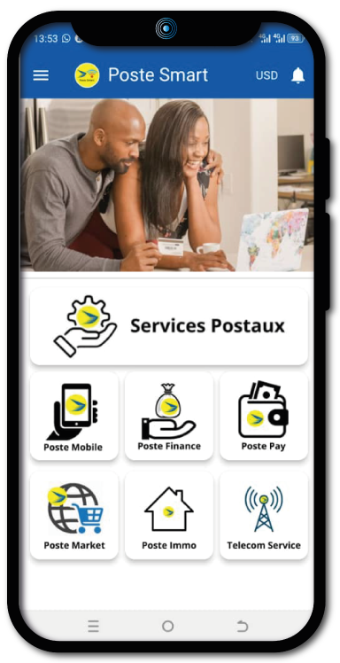 Poste Smart est une Application qui offre aux utilisateurs de n'importe quel réseau mobile en RDC, les services combinés de la Poste avec ceux de SMART.